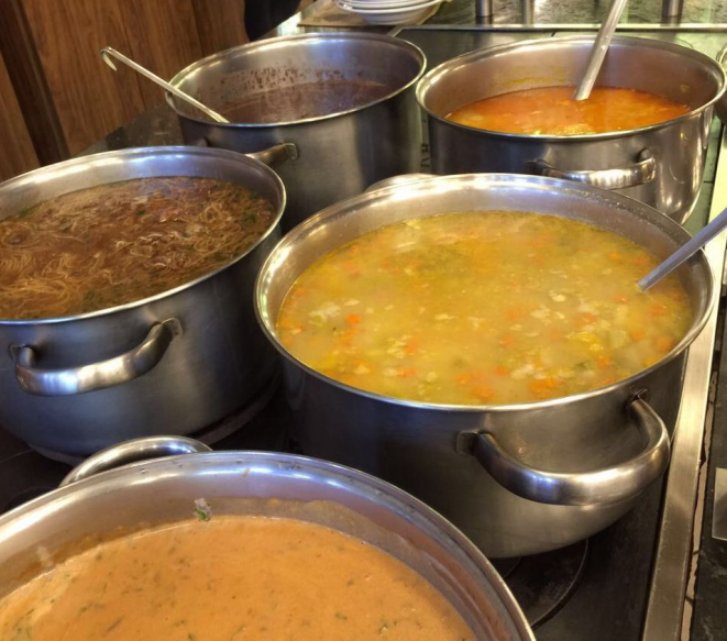 De segunda a sábado, das 18h às 0h, o restaurante serve buffet livre de sopas a R$ 28 por pessoa. São 9 a 10 opções por dia, das quais algumas são fixas: milho, eslava, canja, feijão e de legumes, além dos acompanhamentos como queijo, alho frito, cebolinha e calabresa. É possível também levar as sopas para casa. Cada sopa com 900 ml custa R$ 23 no balcão ou R$ 24 pra entrega em casa, mais a taxa do frete (ligar no restaurante) , e os sabores são aqueles disponíveis no buffet.
