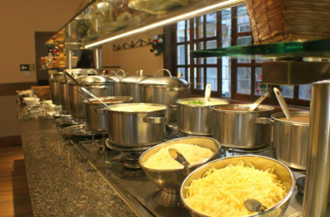 Entre as opções de sopa, ganham destaque os sabores eslava, canja, mexicana, caldo verde, carioca, creme de cebola, aipim com carne e quirerinha. O buffet também tem acompanhamentos para as sopas, como torradas, pimenta, queijo ralado, salsinha, cebolinha e croûtons.