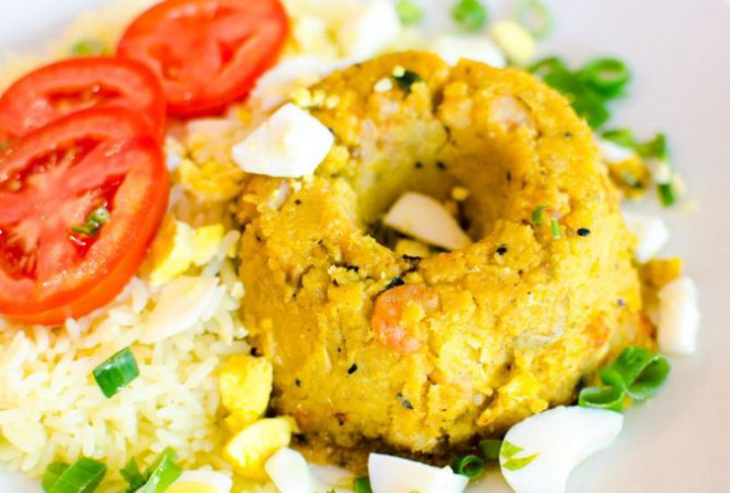 O cuscuz é feito com fubá, biju e mandioca e tem seis sabores: frango, sardinha, vegetais, charque, bacalhau ou camarão (de R$ 13 a R$ 16, 300 gramas). O tempero é uma mistura com gergelim, erva-doce, coentro e ervas. Acompanha arroz com tomate e o feijão é opcional (acréscimo de R$ 2). Na versão vegana, o acompanhamento muda: o cuscuz vem guarnecido de arroz integral com lentilhas e leva castanhas.