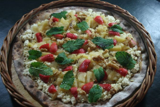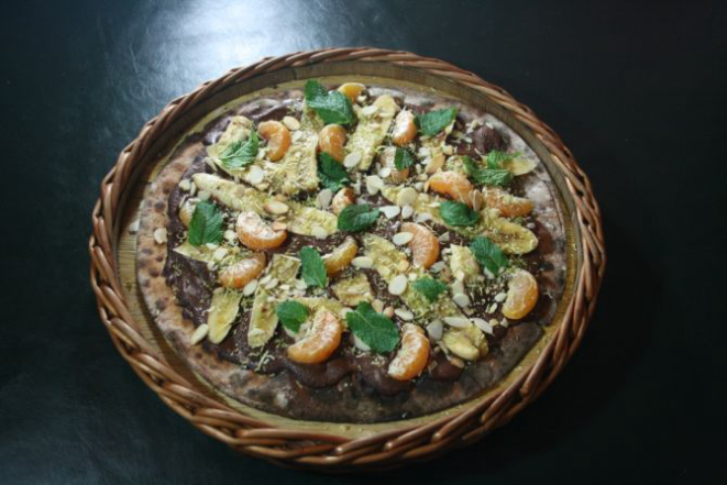 Os sabores salgados são o “Da Horta Lá de Casa”, com muçarela de búfala, tomate picado, alho crocante, alecrim, parmesão ralado, broto de alfafa e espinafre fresco e a “Pôr do Sol”, com tomates sweet grape vermelhos e amarelos, nozes, manjericão fresco e muçarela de búfala.