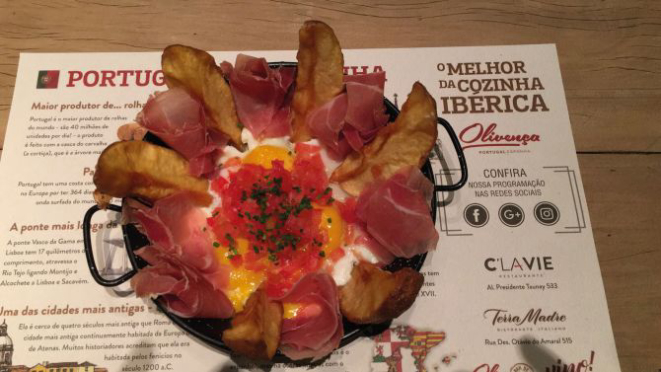 Ovos da Taberna é um prato servido no Olivença que inclui dois ovos estralados, presunto serrano, batatas rústicas e molho especial com tomates-cereja, cenoura e tomate concassé. A receita é servida como entrada e custa R$ 45.