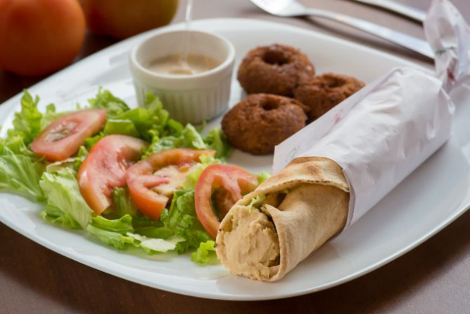 No menu tem também falafel (R$ 13,99), pão árabe recheado com cebola, alho, coentro, hommus, tahine e bolinho de grão de bico, acompanhado de três unidades de bolinho de grão de bico, salada e tomate; e shawarma, pão árabe recheado com carne ou frango preparado na chapa. O recheio leva tomate, pepino em conserva, pasta de alho, coentro entre outros temperos (R$ 13,99). Acompanha fritas, salada, pasta de alho e tomate.