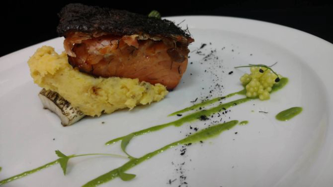 A partir do dia 1.º de novembro entra no menu também o salmão defumado servido com purê de banana da terra e creme de limão.