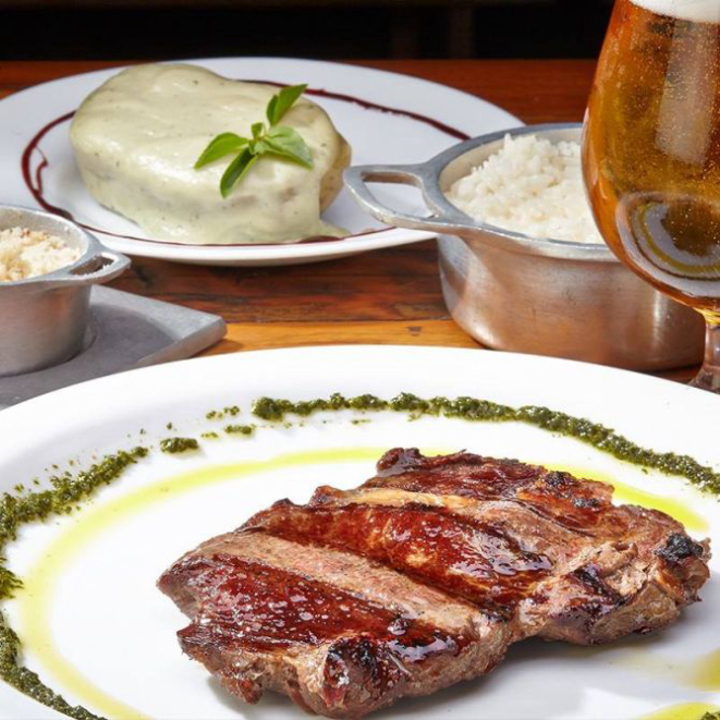 Na hora das carnes, as apostas certeiras são a costeleta de cordeiro com purê de maçã (R$ 84) e os cortes tradicionais, como o bife de chorizo (R$ 57,90) e o bife ancho (R$ 62,90), são servidos com chimichurri e farofa. Quem estiver sozinho pode optar pelo chivito (R$ 25,50), sanduíche tradicional do Uruguai e que leva pão francês, alface, tomate, file mignon e queijo provolone. Minichurros com doce de leite (R$ 16) e o pudim de leite condensado (R$ 14).