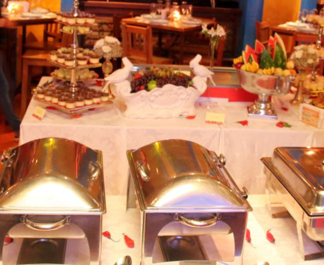 O bufê conta com entradas frias com terrine de pato com pera assada ao molho balsâmico e mel, mini polvo com lichia, tomates e alhos confitados, presunto ibérico, sushis e sashimis. Entre as entradas quentes estão cordeiro com mousseline de batata doce, robalo em crosta de camarão, couscous de frutos do mar e ravióli de brie ao molho de gengibre e camarão. Para finalizar mini manjar de coco com caldas de frutas brasileiras, entremet de chocolate com coco mini cheese cake de damasco com calda de limão siciliano, entre outros. Para acompanhar terá vinho e cerveja.