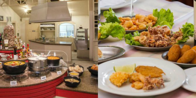Especializado em frutos do mar, o restaurante Peixe Frito conta com um buffet que inclui ceviche peruano, polvo e lula ao vinagrete, coquetel de camarão, além de pratos quentes, como paella, estrogonofe de camarão, peixe ao molho de quatro queijos. Custa R$ 75 o almoço e o jantar no domingo.