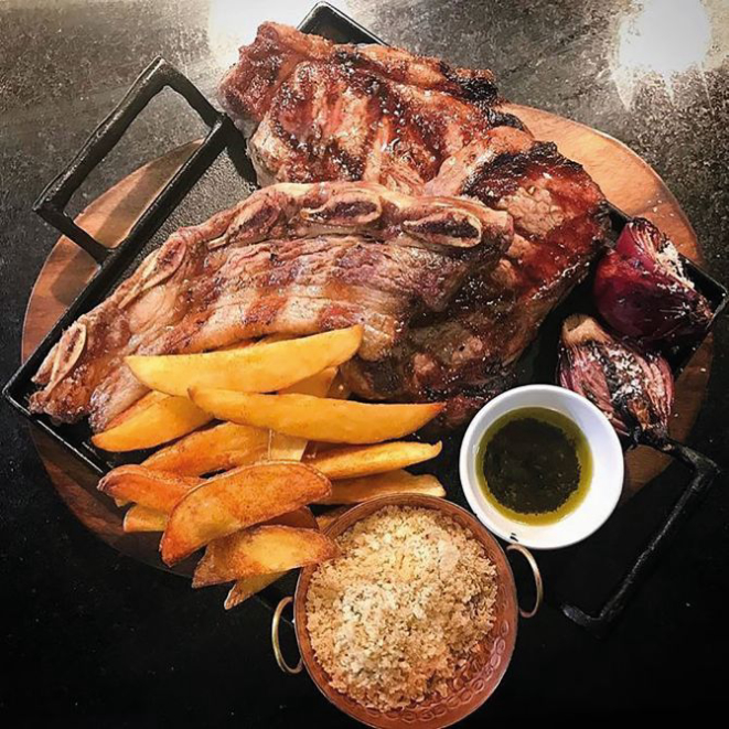 O restaurante de decoração rústica e culinária argentina trabalha com nove cortes, entre os quais o posto de mais famoso é ocupado pelo ojo de bife, também conhecido como entrecôte, que corresponde à ponta do contra-filé (R$ 57). Para acompanhar, fazem sucesso as papas souflé, que são batata fritas infladas, servidas a R$ 24. Entre os destaques está também o matambre a la pizza, capa da costela preparada na grelha e montada como uma pizza, coberta com molho de tomate, queijo, o pimentão vermelho e azeitonas (R$ 51).