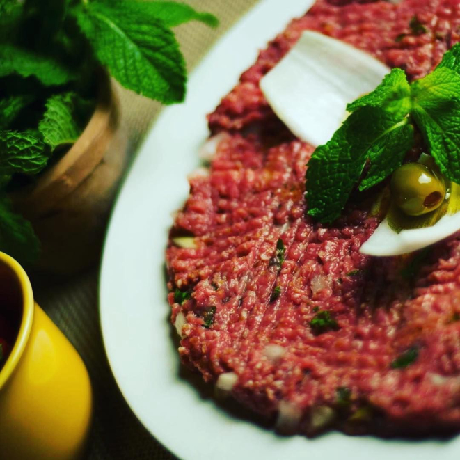A rodada de rodízio começa com algumas entradinhas para se comer com pão árabe. Hommus (pasta de grão de bico), babaganoush (pasta de berinjela temperada com tahine), coalhada, chanclixi à moda (salada de queijo árabe com erva zaatar, cebola e tomate) e o tabule (salada árabe com tomate, trigo burgol, cebola e salsa) e quibe cru companhado com hortelã fresca.
