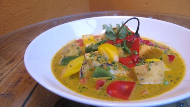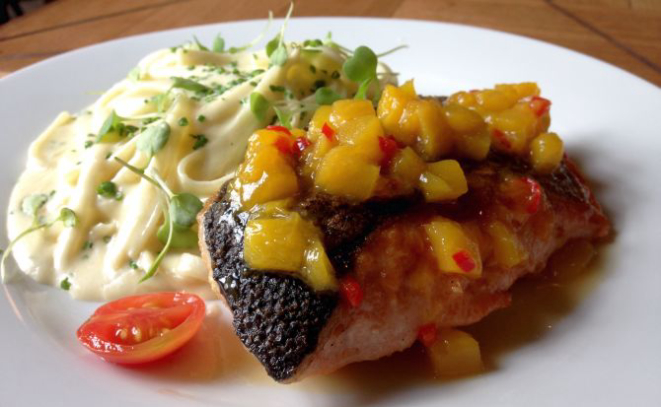No restaurante, o cardápio tem indicações de pratos sem glúten e sem lactose. Como entrada, vá de Laksa (R$ 18,90), sopa da Malásia, pasta de arroz (bifun), shitake, leite de coco, legumes e especiarias. Como prato principal, algumas das opções são o salmão grelhado com tagliatelle de pupunha ao molho de parmesão e chutney de manga (R$ 48,90) ou leitão no tacho com quirera cremosa (R$ 32,90).