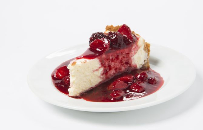Em todas as unidades do Brooklyn, são servidos dois sabores de cheesecake: de frutas vermelhas e goiaba. Ambos custam R$ 13 a fatia.