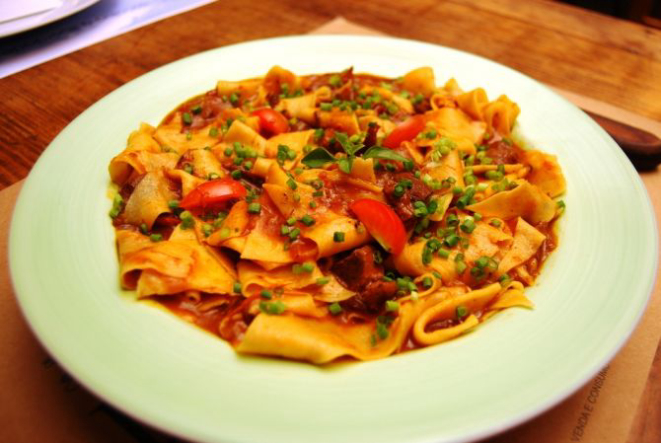 No domingo, o restaurante italiano dos chefs Matteo Bresciani e Gustavo De Lorenzi Gastaldon está com promoção na Bistecca Fiorentina, porção de filé e contrafilé. O prato acompanhado de pasta alla veneta com guanciale e fagioli sai por R$ 115 e serve três pessoas.