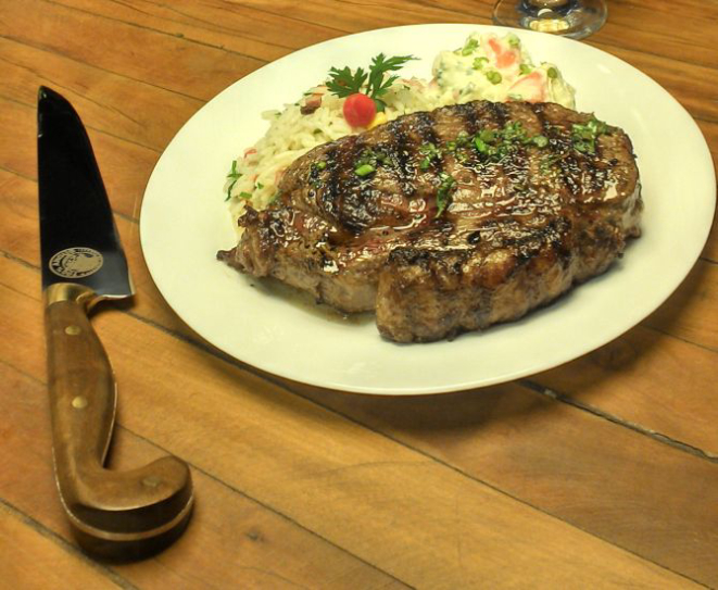 A Boutique da Carne serve 450 gramas de bife chorizo Black Angus com maionese e arroz à grega por R$ 49,95 no almoço de domingo.