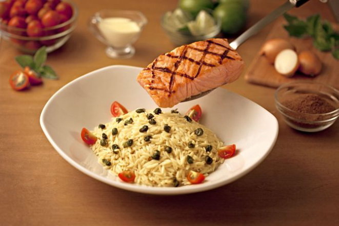 O Salmone & Orzo Pasta é o novo prato do cardápio do Outback Steakhouse. A novidade é uma combinação de salmão grelhado com massa risoni (um macarrão em formato de arroz) servida com molho branco, queijo, tomate cereja e alcaparras. A opção, disponível nos 56 restaurantes da rede, custa R$ 46,75.
