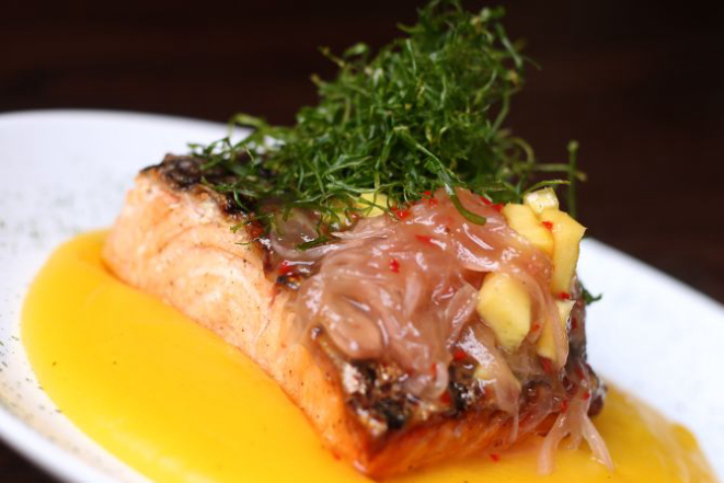 Outro celebre preparo do sudeste asiático é o Malásia Nasi Goreng, que aparece nas versões mignon (R$ 35,90), abacaxi (R$ 26,90) e frango (R$ 29,90). Na receita vai cebola, cenoura, repolho roxo, broto de feijão, castanha de caju moída e alho-poró crocante. Entra no cardápio também o Phuket Salmon (R$ 39,90), salmão grelhado servido com purê de mandioquinha, molho agridoce de manga, cebola roxa e um leve toque de coentro.