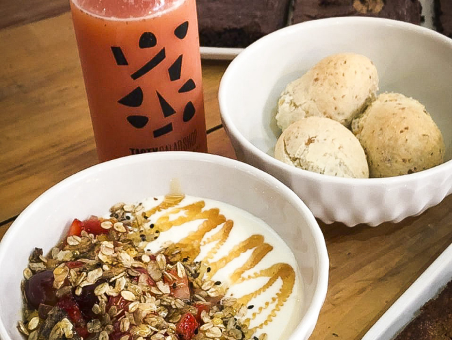 O Tasty Salad Shop está lançando uma novidade para quem quer uma comida saudável logo cedo: um menu especial de café da manhã. A rede de lojas já vendia produtos que podiam ser consumidos na primeira hora do dia, mas agora montou um cardápio específico para atender a vontade de seus clientes. Ao todo, são sete opções, disponíveis em take away, delivery e para comer no local - variando de acordo com as regras dos decretos municipais.