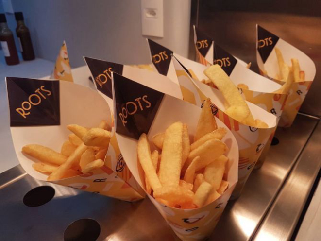 Batatas fritas no cone do Roots. Foto: Reprodução/Facebook