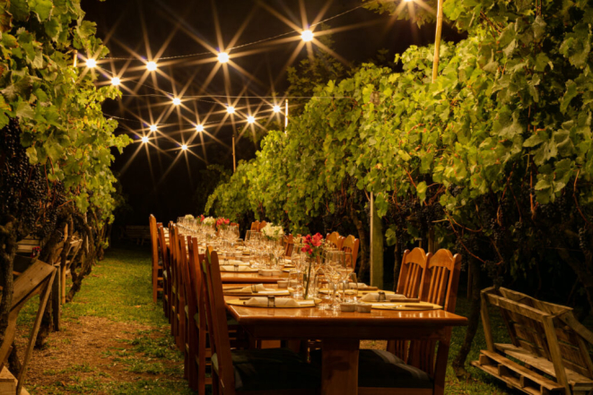 Essa liberdade também se reflete nas experiências oferecidas ao longo do ano. Além do piquenique, a Colheita Noturna tornou-se um dos momentos mais aguardados da agenda da Larentis, convidando o público a vivenciar o ritual da vindima sob a lua, em uma atmosfera que mistura trabalho, celebração e memória. Degustações orientadas, experiências premium e visitas que valorizam o terroir completam um portfólio que cresce sem perder coerência.