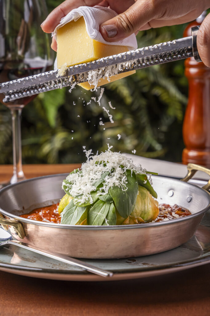 Essa aproximação vai do ambiente à mesa. Conhecida por uma cozinha de base italiana, Dayse trabalha com fundamentos bem definidos: molhos estruturados, massas precisas, equilíbrio de textura e uma apresentação que valoriza a experiência visual sem perder o foco do prato. É uma culinária que parte da tradição, mas não fica presa a ela.