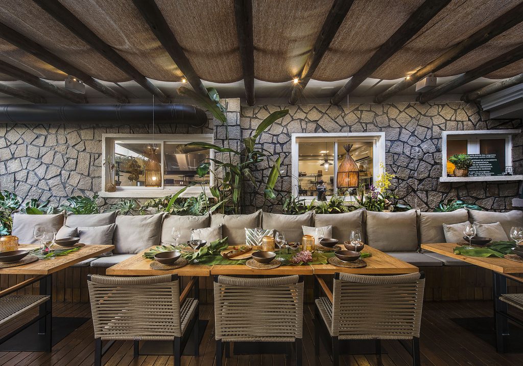 No salão, o ambiente reforça a experiência. Madeira, linho, plantas tropicais de folhas largas cuidadosamente dispostas nas mesas, aromas sutis no ar, guardanapos de tecido que exalam frescor. Até os banheiros, acolhedores e decorados com capricho, parecem parte de um cenário pensado para desacelerar. Ali, tudo tem personalidade, tudo tem história.