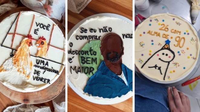 Fica, vai ter meme! Bolos decorados com mensagens divertidas fazem sucesso