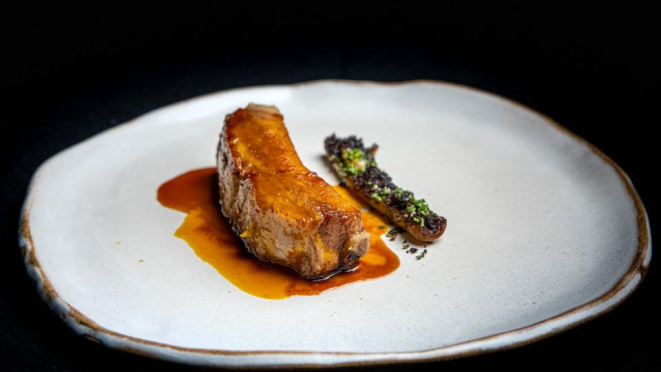 "O porco traz uma referência da minha avó, Sueli, que costumava prepará-lo. Para fazer o prato, foquei na comida que gosto de fazer, com base oriental, mas com uso de ingredientes brasileiros. Por isso escolhi o tucupi para dar acidez ao prato, no lugar, por exemplo, do limão", explicou o chef em entrevista exclusiva ao Bom Gourmet.
