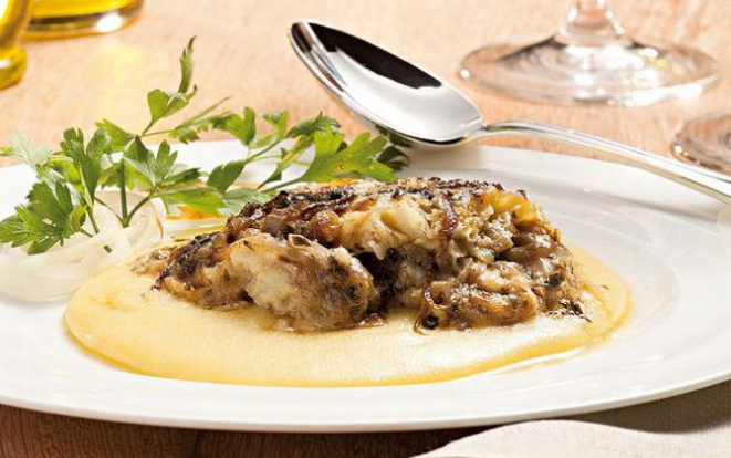 O bacalà alla Vicentina, antiga receita italiana, é do chef Andrea Toscani, do Pomodoro, e foi criada especialmente para a reportagem. Foto: Alexandre Mazzo/Gazeta do Povo