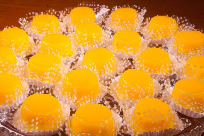 Na padoquinha, o quindim pode ser encontrado quase todos os dias. Vistoso na vitrine de doces, ele é um pouco maior do que o tradicional. Custa R$ 5.