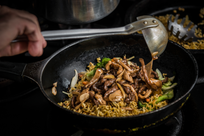 Outra recomendação para um yakisoba completo é investir em um bom caldo para dar base ao molho. A preferência por um caseiro ao invés de caldos prontos ou apenas água também é garantia de um sabor diferenciado. “A água não acrescenta sabor, o caldo sim. Extrai o sabor dos ingredientes para a água e valoriza o molho”, afirma. O que não for utilizado no molho pode ser guardado na geladeira durante uma semana para outras receitas.