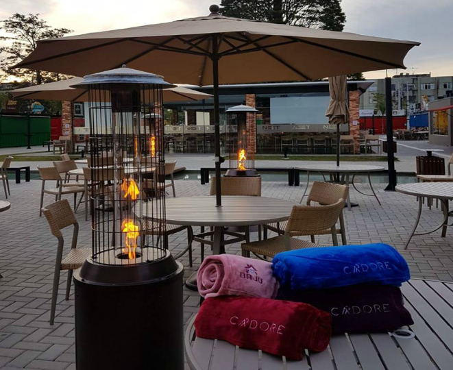 O GARDS Rooftop Bar, no Pátio Batel, oferece mantas e aquecedores para deixar o espaço mais convidativo. Além disso, o bar serve o tradicional quentão para aquecer as noites frias.