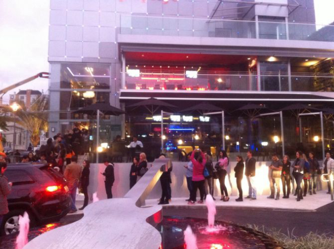 O tempo de espera na fila é estimado entre uma hora e uma hora e meia. Enquanto a casa funciona, um guindaste com operários dá os últimos retoques na fachada lateral do Hard Rock Cafe, posicionando uma guitarra gigante.