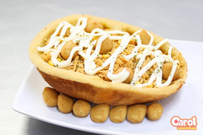 A coxinha brasileira já transcendeu todas as formas e nesta Páscoa virou ovo. A rede Carol Coxinhas, de São Paulo, desenvolveu a ideia: com 850 g, a metade de ovo é feita com massa de coxinha frita e recheada com frango e Catupiry. De brinde vem 17 minicoxinhas junto. O ovo coxinha custa R$ 65.