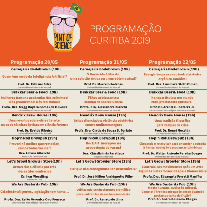 A tradução livre é um “copo de ciência”. Explico. São palestras sobre ciência e pesquisa científica em botecos. O Brasil é o país que mais eventos realiza durante essa semana que acontece no mundo todo.