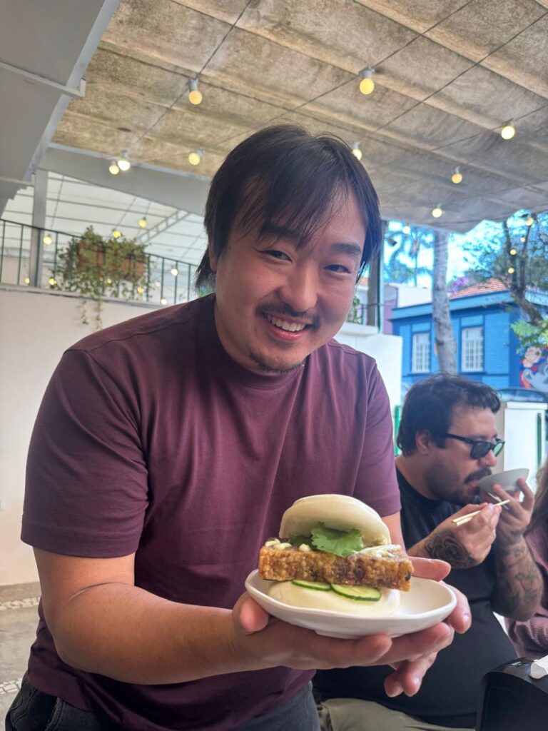 Caio começou cedo na cozinha, cresceu dentro do restaurante do pai, formou-se em gastronomia depois de passar pela engenharia de alimentos e acumulou experiências importantes em casas como Miya, Aizomê e Tuju. Foi justamente após uma temporada de estudos no Japão que conheceu o projeto do Mapu e se apaixonou pelos sabores de Taiwan. A partir dali, mergulhou de vez nesse universo, ao lado de Victor Valadão, parceiro de cozinha até hoje.