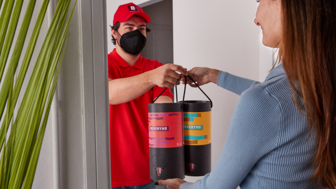 Vinhos de qualidade, produzidos por pequenas vinícolas artesanais, entregues em casa em uma embalagem ecológica e que preservam a qualidade e o sabor. Assim é Beveryno que oferece ao cliente a possibilidade de receber em casa vinhos italianos em frascos de plástico poli acoplado e revestidos internamente por uma folha de papel impermeável e própria para contato com alimentos. Graças ao uso desse material, o vinho se conserva fresco mesmo após seis semanas da sua abertura. A grande vantagem é que a embalagem vem ainda com uma "torneirinha", útil para dosar a quantidade de vinho e que ainda impede que a bebida tenha contato com o ambiente externo. Tudo isso significa, em termos de impacto ambiental, uma redução de 80% em relação às tradicionais garrafas de vinho.