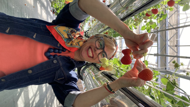 E, nesse conceito, na estufa, um enorme pátio coberto, climatizado, limpíssimo, estão inúmeros varais automatizados que recebem a plantação orgânica hidropônica. Tecnologias combinadas que saem dos padrões normais. Um plantio que se posiciona na altura dos nossos olhos, das nossas mãos para apreciar, escolher e colher o seu morango no varal, por quanto tempo desejar.