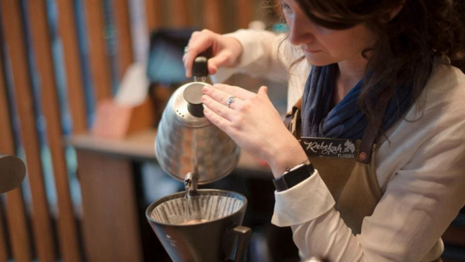 E se sentindo em um grande centro de atrações, a gente caminha pela loja sem pressa. Vai entendendo a passos lentos as experiências, vai até mesmo inconsciente emitindo vários “Wow’s”, que vão selando a impressão inicial. Grãos especiais de vários lugares do mundo seguem para torra por tubulações que decoram o espaço e permitem que você acompanhe todo o processo. Dicas técnicas sobre o preparo, degustações e experiências de realidades virtuais com o apoio de aplicativos, convidam leigos e especialista a brincar pelo mundo do café por vários pontos distribuídos pela loja. Bolos, pães, pizzas, sobremesas concorrem da vitrine ao cardápio com os cafés especiais, com os coquetéis de café, e porque não com o vinho, chá e cerveja para aquele que deseja só um assento para apreciar a decoração e fazer companhia aos amigos.