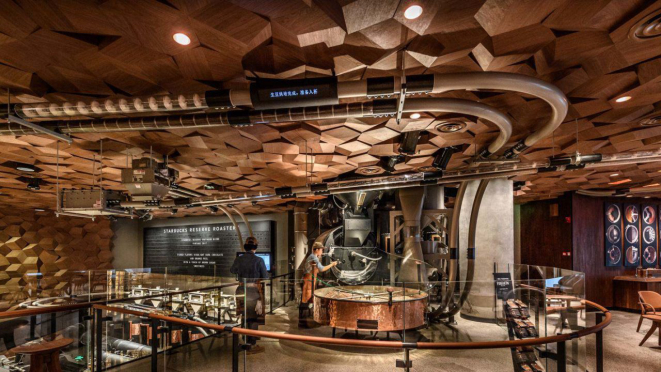 Na maior loja da Starbucks fora dos EUA, tomar café sentado é quase um privilégio