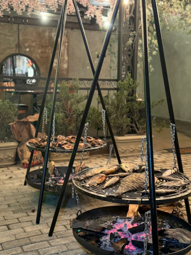 Segundo ano que eu vou até São Paulo para esta festa, é evidente que o chef Felipe Schaedler sabe como celebrar o Banzeiro. Para o quinto aniversário do restaurante, ele trouxe mais uma vez os ingredientes amazônicos para o centro das atenções. Com a noite agradável, a área externa do restaurante fez sucesso, especialmente porque pudemos apreciar de perto as preparações no moquém – uma grelha artesanal para defumação de peixes, nela peixes amazônicos como tambaqui, famoso da casa, piranha, jaraquí, mapará e aracu, confesso que estes três últimos eu não conhecia.