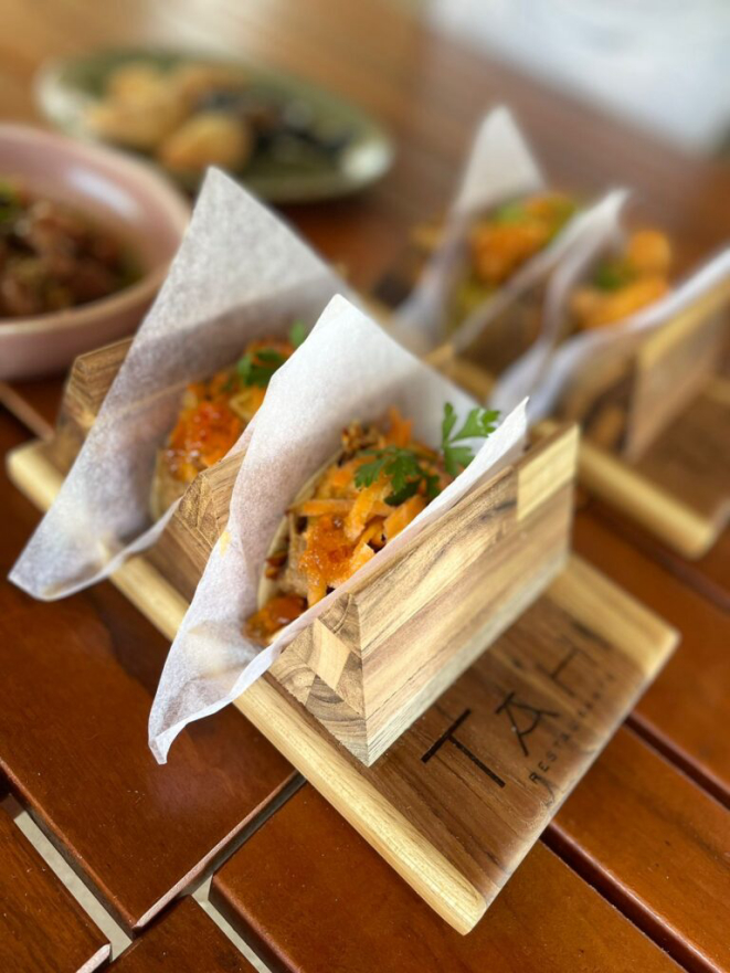 Os petiscos à beira da piscina são uma verdadeira tentação. O taco de carne de sol, com carne macia e bem temperada e o taco de camarão crocante, sempre com muito coentro fresco, junto do pastel de lagosta acompanhado de tartare de banana foram os meus favoritos. Os drinks assinados pela talentosa Isadora Fornari, especialista em destilados e cachacière, completam o cenário.