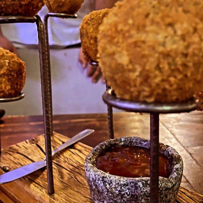 que são bolinhos de costela desfiada assada com especiarias por 12 horas e recheados