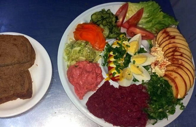 chucrute, batatas e saladas. Tanto quanto o Kasseler