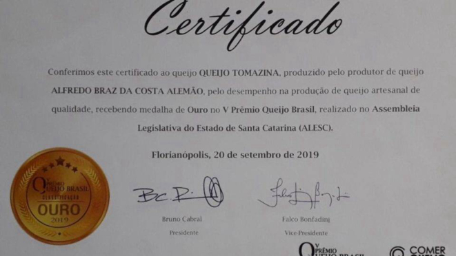 Tomazina ficou com medalha de ouro nesse concurso, que teve 720 queijos