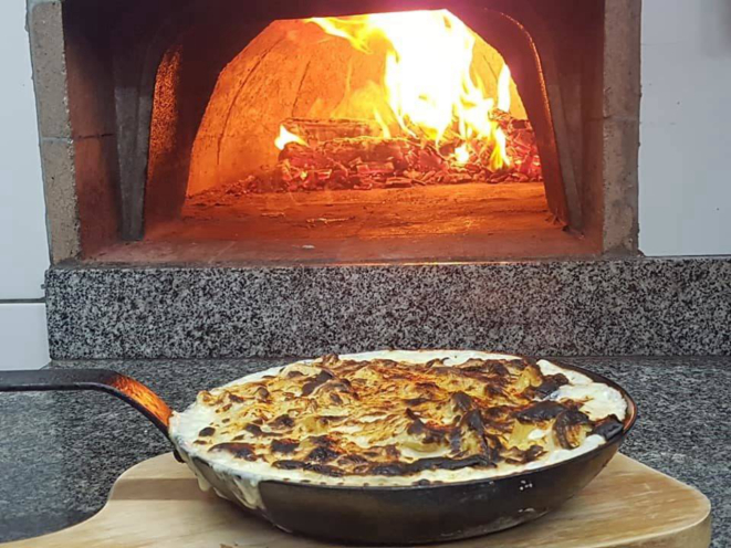 Toda quinta sai tudo do forno a lenha. Entrada, pratos principais e sobremesa