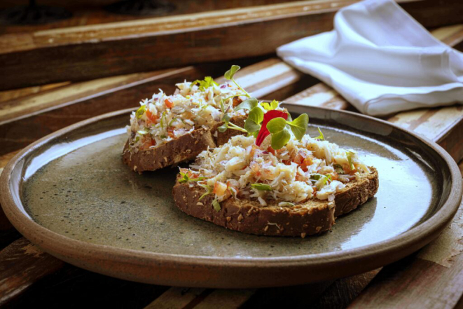 Em seguida, um prato que tem sido sucesso desde o lançamento, semanas atrás: Carne de tigre (R$ 55), uma livre interpretação do chef sobre a nossa consagrada Carne de onça. Ele decidiu colocar um ceviche de siri sobre uma broa preta e, referindo-se ao “leche de tigre”, a base do tempero dos ceviches, encontrou uma boa sacada para a apresentação. Muito saboroso, justificando-se o retorno já apresentado pelos clientes.