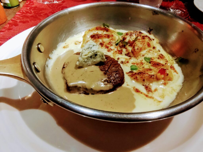 Além do mignon que nos foi servido, o restaurante ainda propõe outras opções, como Mignon Dijon (tournedo grelhado, ao molho de mostarda, acompanhado de linguini de espinafre – R$ 98), Mignon funghi (tournedo grelhado ao molho funghi secchi, acompanhado de tagliatelli de açafrão – R$ 98) e Mignon com crosta de castanha-do-Pará (acompanhado de risoto de alcachofras e queijo brie R$ 98).