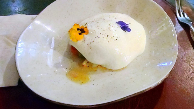 com uma Burrata envolta em massa de longa