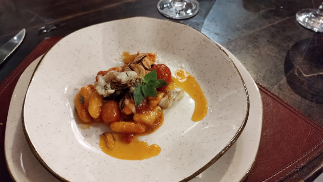 a chef não poderia ter tido melhor insight. Veio, então, Cavatelli de bacalhau, com molho exclusivo defumado, tomates e