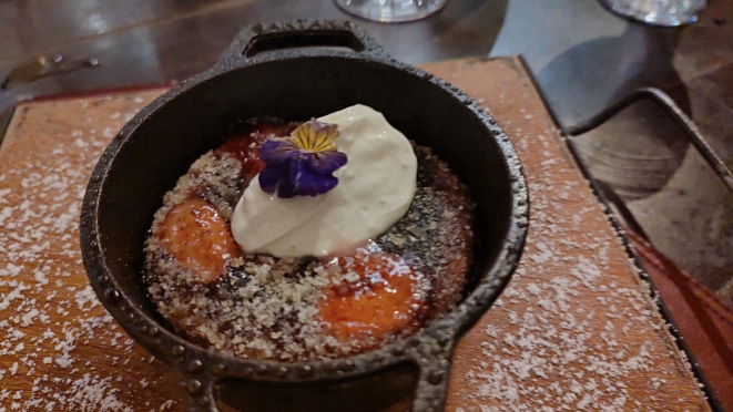 com creme azedo da chef. E ainda Gelato di basilico, sorvete de manjericão, chutney de tomates, crumble e tuile.