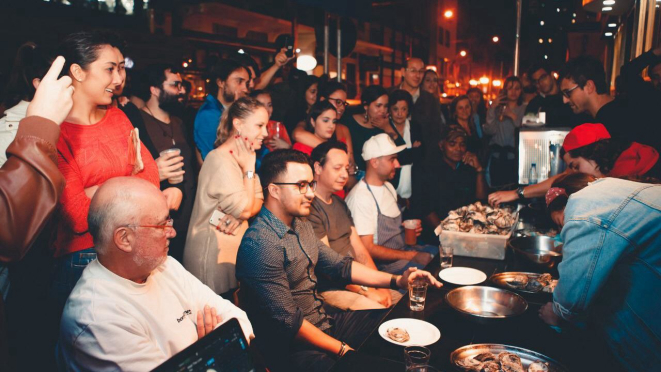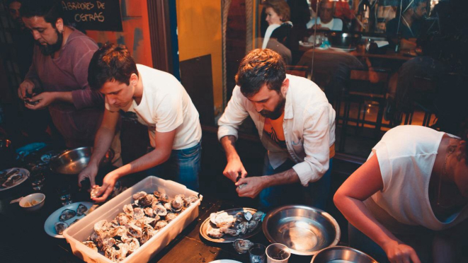 de abertura de ostras do Bar Ostra Bêbada, que fica ali, bem no centro da