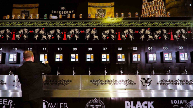 atração são as torneiras de chope, que funcionam no sistema de autoatendimento.